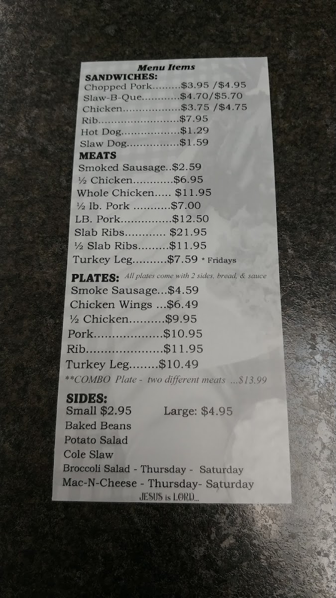 The menu highlights include smoked ribs, chicken, and pulled pork, each prepared to emphasize rich, smoky flavors that pair well with traditional sides such as baked beans, macaroni and cheese, and potato salad. These hearty offerings fit naturally into moments when comfort food feels right—whether it’s a family meal, a friendly get-together, or a midday break.